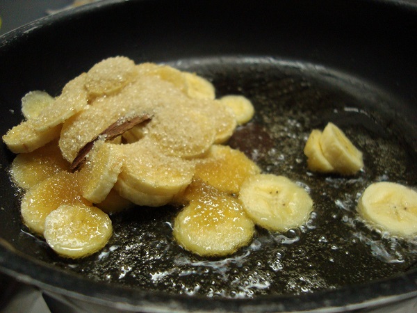 Fry it up so that the sugar caramelises and the banana softens. Resist the urge to serve it up on a plate and gobble it all with a nice hot roti (my ideal alternative to this sandwich)
