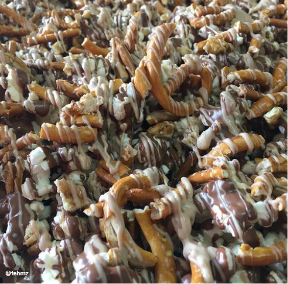 Throw on pecan and pretzel pieces